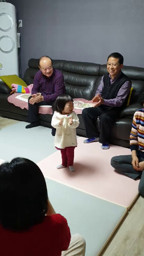 주아의 재롱(2018.12.25) 율동을 마치고는 모두 박수를 치는데 안치는 사람에겐 손가락으로 가르키며 지적을 해서 박수를 안칠수가 없다. 일부러 모른척하고는 박수를 안치면 계속 박수 치라고 지적한다. 주아(꼬꼬) 이야기 2018.12.26